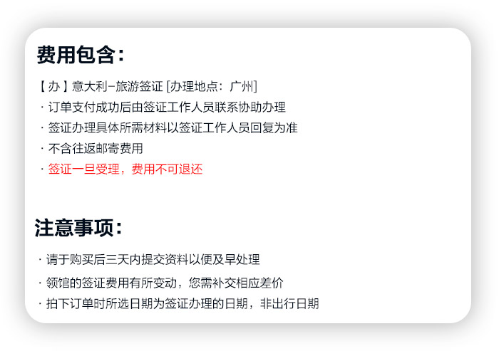 9. 签证费上涨说明:旅客下单后需及时将相关资料提交办理,否则如遇政策原因(如领事馆调价)的价格上涨,旅客需补齐差价。