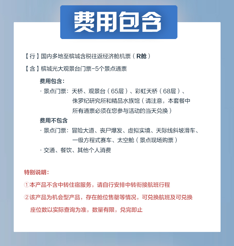4. 本产品支付价格已含机建燃油税,受国际航空油价、燃油附加费等政策影响,购买后出票时如发生燃油费上涨需补齐差价。